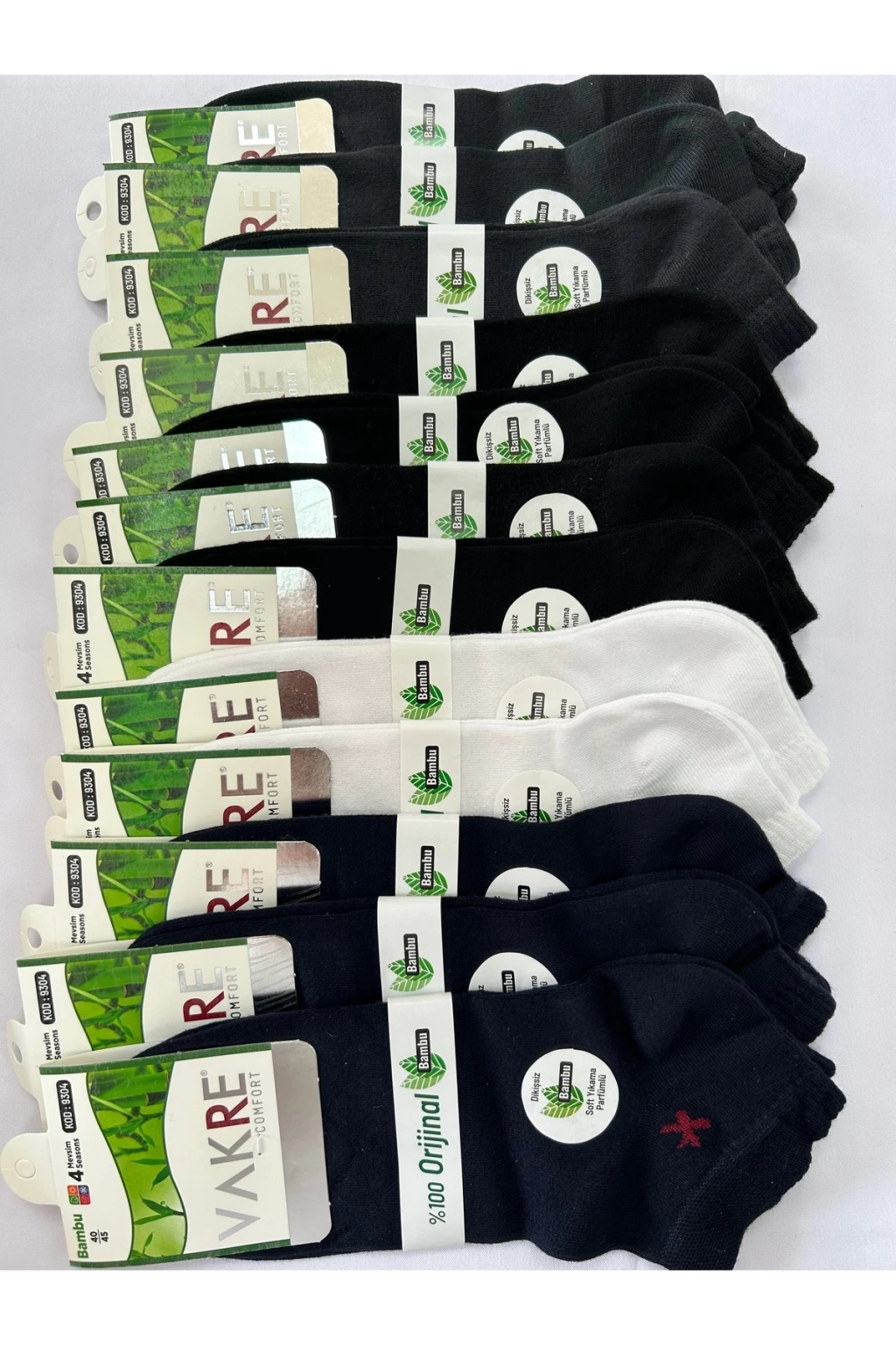 Ürün birinci kalite bambu içeriklidir.; Dikişsizdir.; 12 adet gönderilecektir.; Ayağınızda hiç çorap yokmuş hissi verecektir.; Kutu karışık renklidir.; 2 beyaz 5 lacivert 5 siyah şeklindedir.
