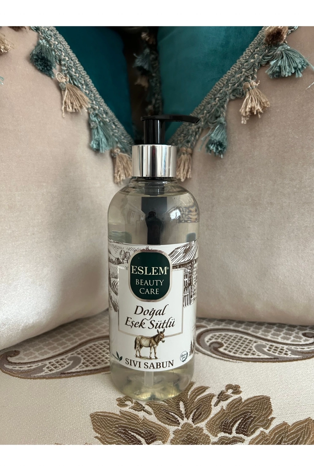 Eslem Doğal Eşek Sütlü Sıvı Sabun doğal eşek sütlü sıvı sabun, kusursuz bir güzellik için başta el ve yüz olmak üzere vücudun günlük temizliğinde kullanılır.; Cildinizin doğal dengesini koruyarak benzersiz bir arınma sağlarken, teninizi nemlendirir, yumuşatır ve mükemmel bir bakım sağlar.; Tüm cilt tiplerinde güvenle kullanılır.; Organik kokusuyla elinizi yıkadıkça ferah bir ortam sağlar.; * Ellerinizi nazikçe temizlerken hoş kokusuyla ferah bir el yıkama deneyimi sunar.; * Dermatolojik olarak test edilmiştir.; * Cilt pH’ı ile uyumludur ÜRÜN 500 ML'DİR