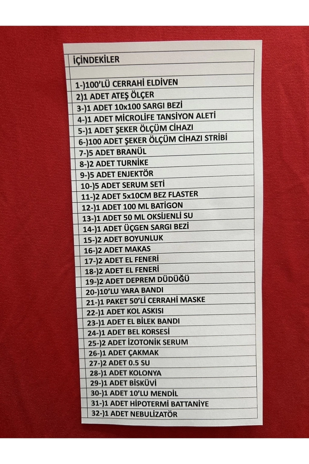 TAM TEŞEKKÜRLÜ 31 ADET ÜRÜNDEN OLUŞAN,HER EVİN İHTİYACI İLK YARDIM ÇANTAMIZ. ; İÇERİSİNDE ACİL TIBBİ MÜDAHALE GEREKTİRECEK TÜM ÜRÜNLER VARDIR. ; ÜRÜNLER YOLDA BIRAKMAYACAK KALİTELİ ÜRÜNLERDEN SEÇİLMİŞTİR.;