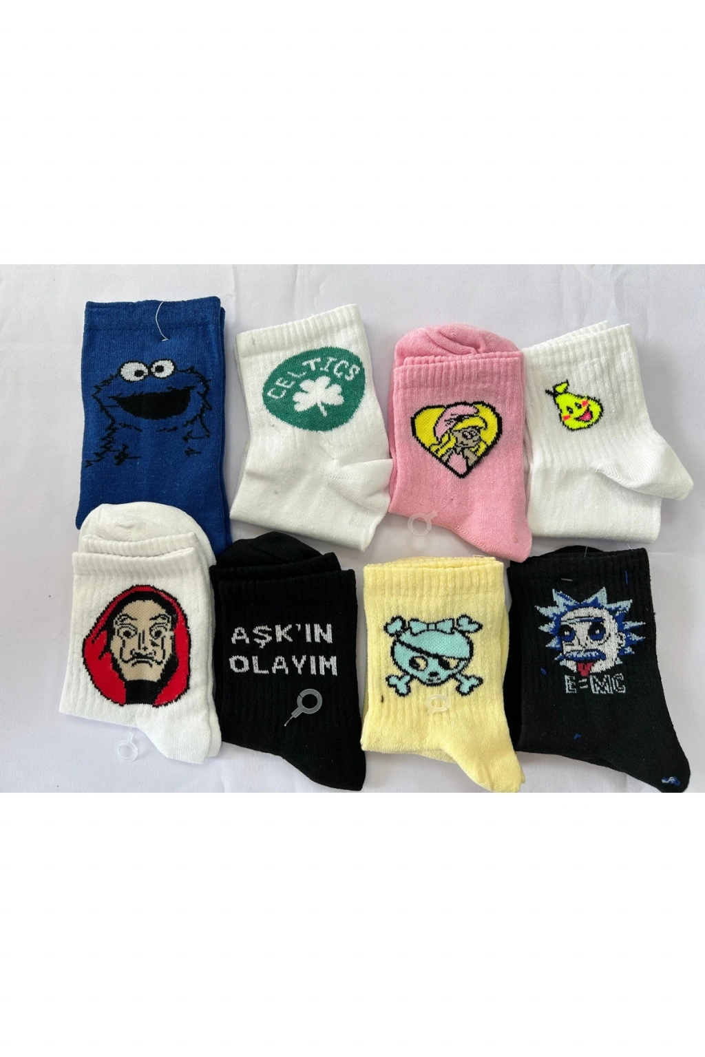 KARAKTER DESENLİ UNİSEX PAMUKLU ÇORAP 8 ÇİFT