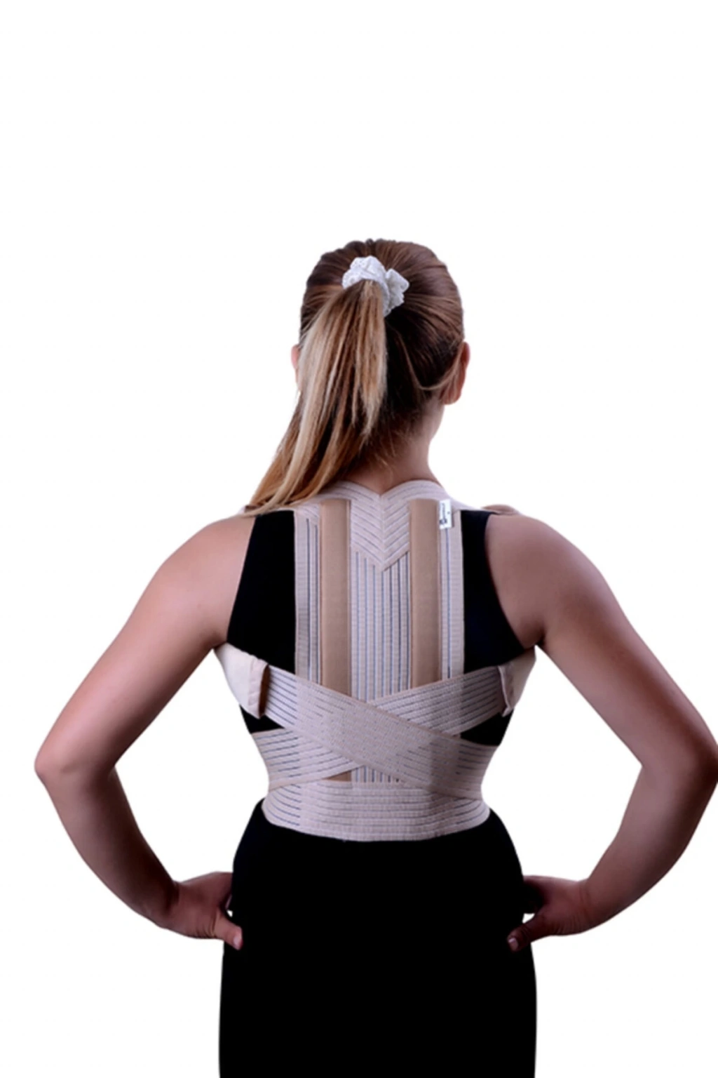 Yerli üretim. ; Elastik ve hava geçirgen dokuma misinalı kumaşlardan imal edilmiştir.Kumaş içerisinde kullanılan elestanlar gipeli olup,ürün içerisindeki balenler, yarı plastik hammaddelerden üretilmiştir.Ürün üzerinde kullanılan cırt bantlar ve diğer plastik malzemeler röntgen görüntülerini etkilemeyecek hammaddelerden imal edilmiştir. ; ETKİ BİÇİMİ:Elastik yapısı ile sırt ve bel bölgesinde bulunan dokulara kompersyon yaparak kasları güçlendirir.Ürün,içerisindeki plastik balenler yardımı ile sırt omurlarının hareketini uygun şekilde kısıtlayarak sırtı istiharate alır. ; ENDİKASYONLAR:Kamburlukta, sırt kası zayıflıklarında ,duruş bozukluğunda kullanılır. ; Gövdenin anatomik şekline göre diyan edilmesi konusunda hassas olunmalıdır.Ürün göğüs kalınlığına ve sırt bölgesinin yüksekliğine göre farklı bedenlerde üetilmiştir.Ürün,ana materyalin dışında omuzları''8'' şeklinde destekleyen ekstra kuşaklarla desteklenir.Sırt orta kısmından iki adet yarı sert plastik balenle desteklenmiştir. ; Hasta ayakyta iken ve düz pozisyonda iken meme ucu hizasından göğüs çevresine uygun beden tespit edilir.Korse bel bölgesinden çevrelenerek cırt bantlar yardımı ile ön kısımdan uygulanır.Omuz kayışı vücudun sırt kısmından çapraz bir şekilde seyreder ve ön kısmından cırt bantlar yardımı ile birleştirilir. ; UYARILAR: ; Omuz kayışlarının aşırı gergin veya gevşek olmamasına dikkat edilmelidir. ; Tek bireyin kullanımı için tasarlanmıştır.. ; Ürün teknik personel tarafından uygulanmalıdır. ; YIKAMA TALİMATI: ; Ürün kumaşının zedelenmemesi için yıkanmadan önce kanca cırt bantları ilmek cırt bantlara yapıştırılır. ; Yıkamadan önce içinde bulunan metal balenler çıkarılmalıdır. ; Çamaşır makinasına atılmaz. ; Soğuk su ile çitilenmeden yıkanır. ; Ütülenemez ve asılarak kurutulamaz. ; Deterjan kullanılmaz;beyaz sabun kullanılır. ; SMALL beden olup,65-70cm 'dir. ;