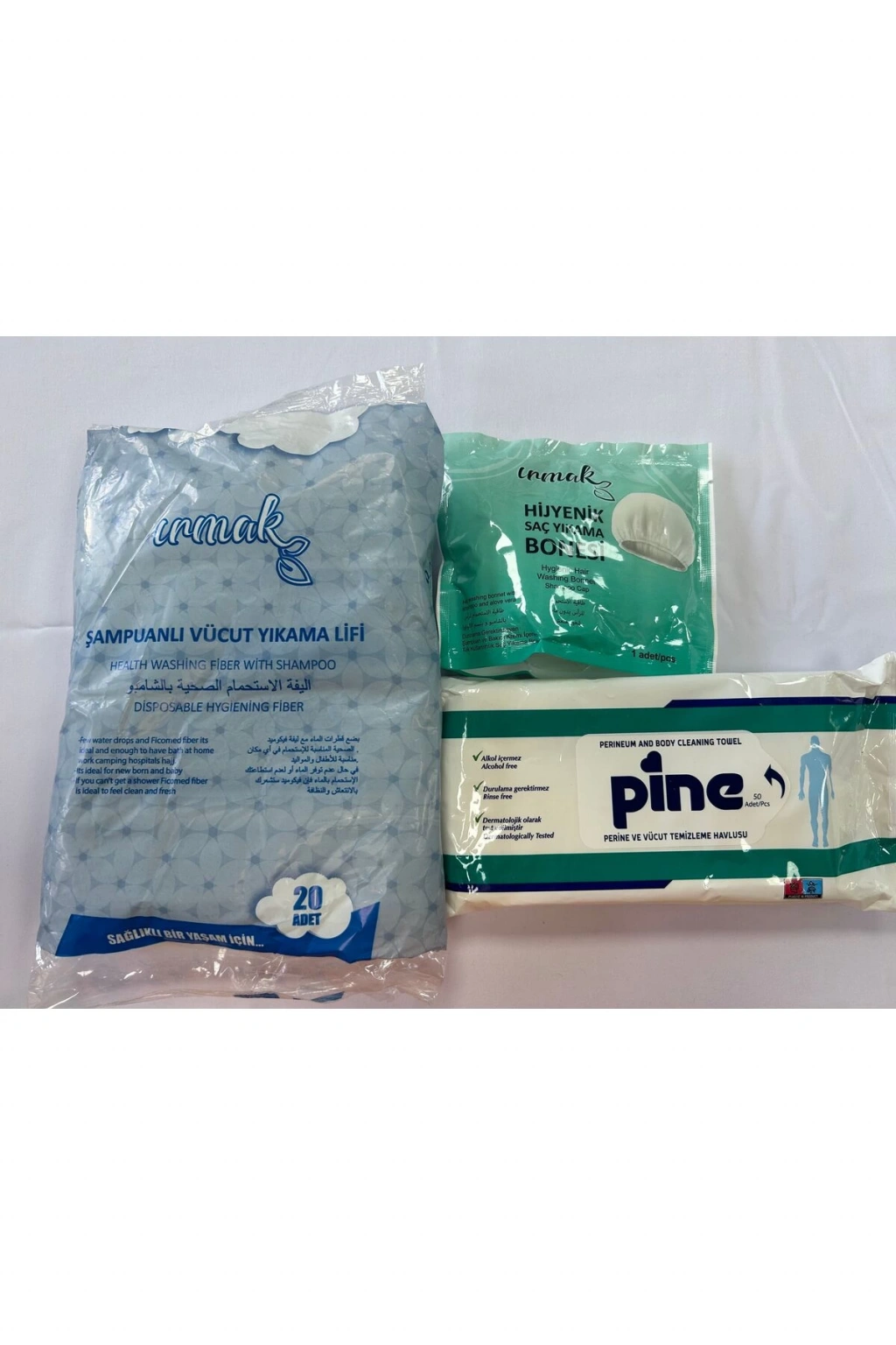 Ürün içeriği:; 1 adet 50’li Hasta vücut temizleme mendili; 1 paket 20’li Hasta vücut lifi; 1 adet Hasta saç yıkama bonesi Ürünler kalitedir ve banyo yapamayan insanlara banyo etkisi sağlar;